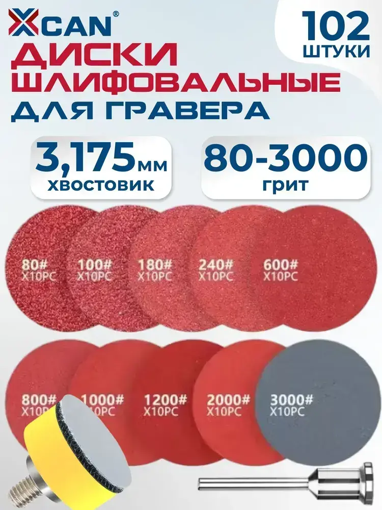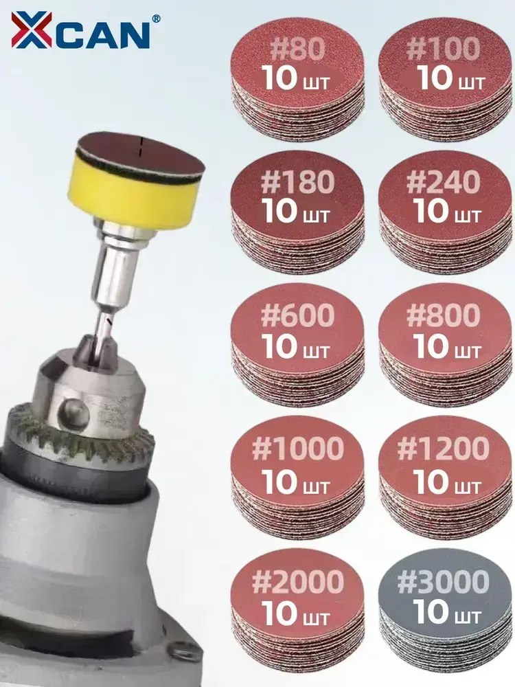 Круг шлифовальный на липучке XCAN 25мм, 102 предмета