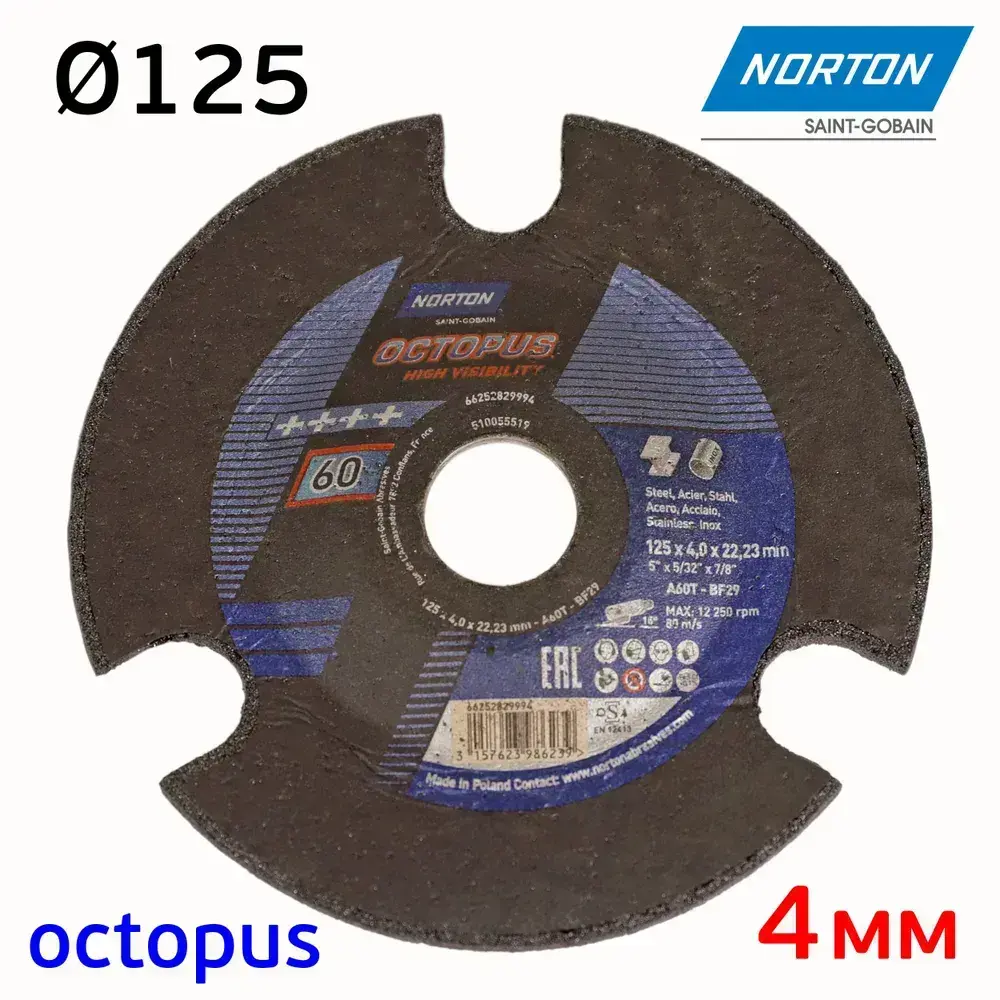 Круг зачистной Norton Octopus (125х4.0мм; Р60) с прорезями по металлу и нержавеющнй стали