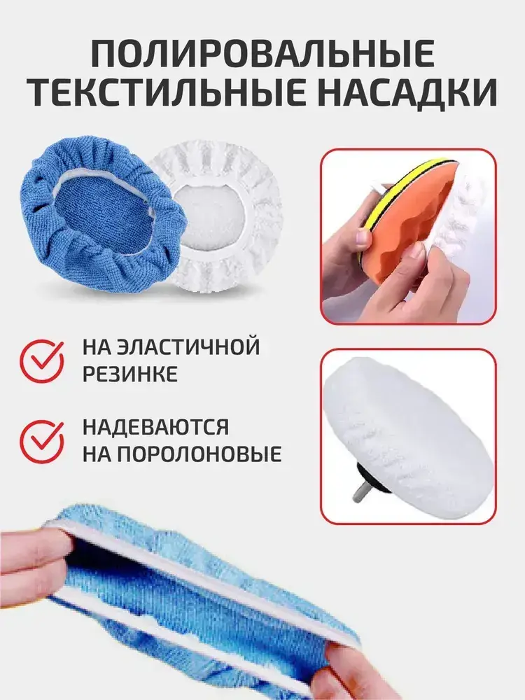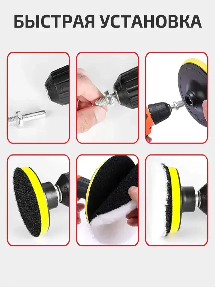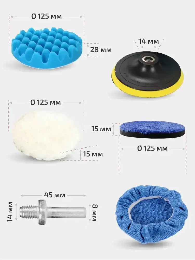 Круги полировальные для авто на липучке набор 13 предметов, губки для полировки кузова и фар автомобиля, насадки для дрели и шуруповерта для детейлинга, диаметр 125 мм