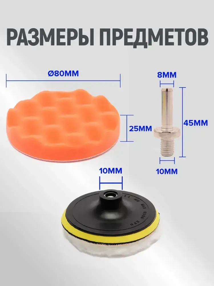 Круги полировальные для авто набор 11 предметов, губки для полировки кузова и фар автомобиля, насадки для дрели и шуруповерта для детейлинга, диаметр 80 мм