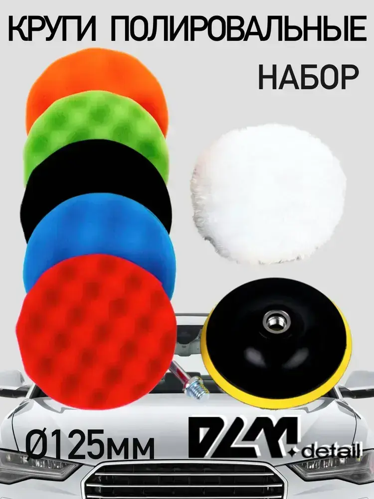 Круги полировальные для полировки кузова авто и фар, губка для авто, насадки 125 мм