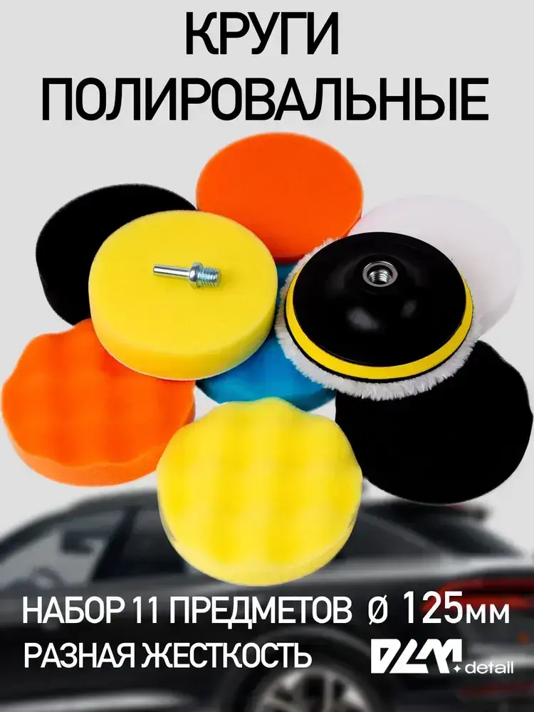 Круги полировальные на липучке для полировки кузова авто и фар насадки на подошву 125 мм
