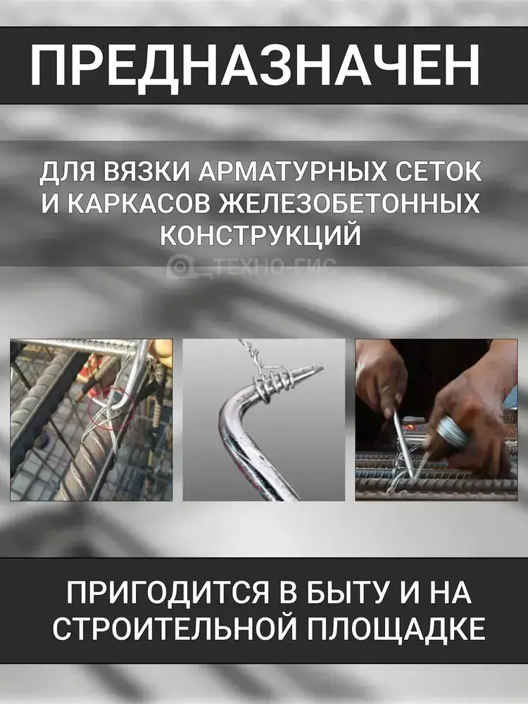 Крючок для вязки арматуры 24 см / Крюк вязальный для проволоки металлический