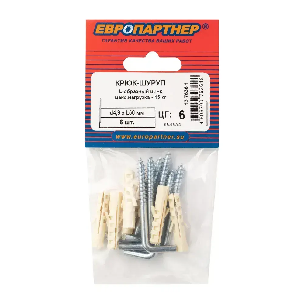 Крюк-шуруп L-обр. d4,9хL50мм оцинкованный Европартнер (6 шт.)