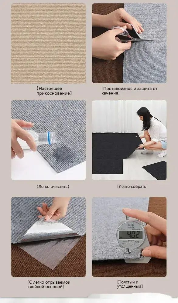 Квадратный ковер 30см х 30 см* 10 штук/1.8 квадратных метра/коричневый