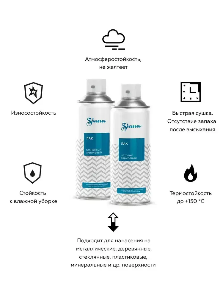 Лак акриловый универсальный SIANA, бесцветный, аэрозоль, 520 мл, матовый