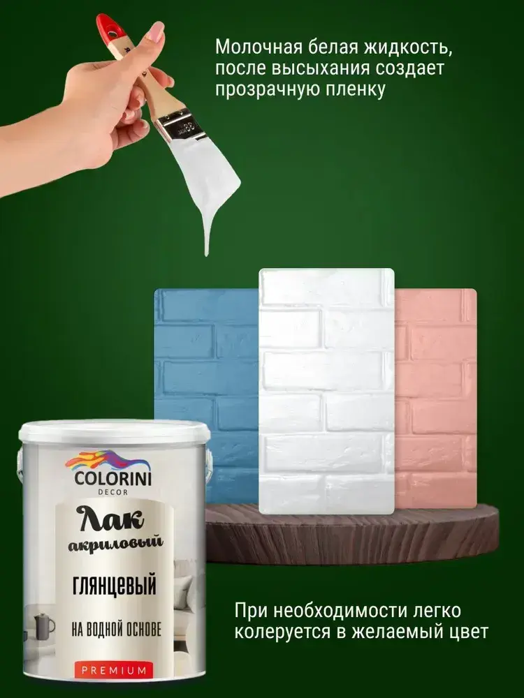 Лак глянцевый акриловый универсальный для стен камня дерева