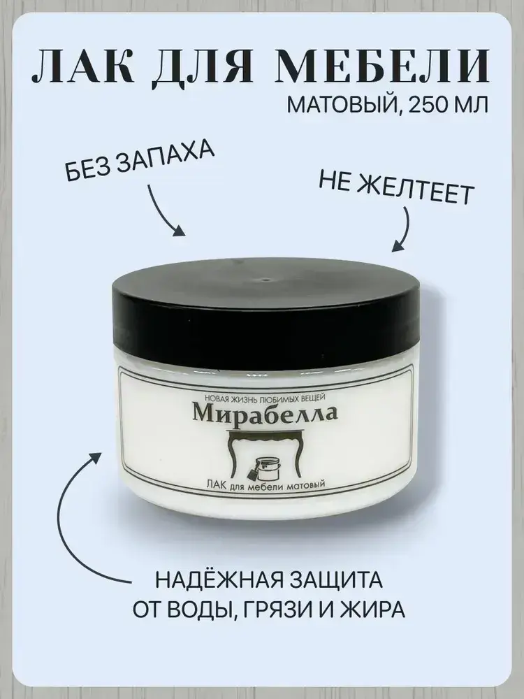 Лак матовый для мебели и дерева Мирабелла, декорирования и творчества, без запаха 250 мл