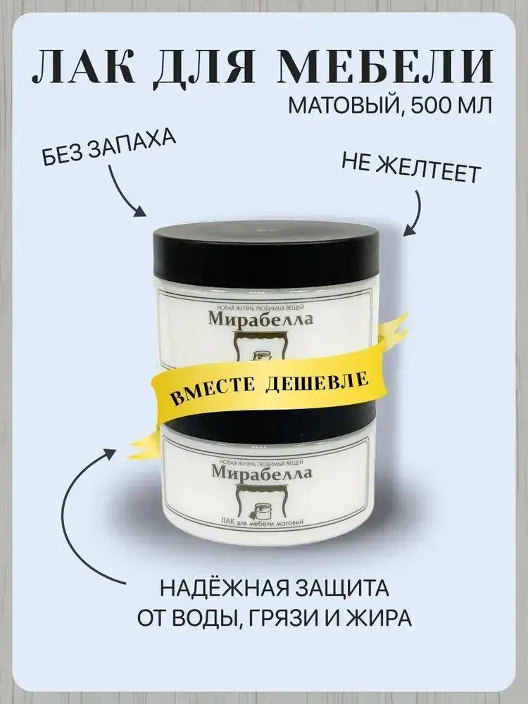 Лак матовый для мебели и дерева Мирабелла, декорирования и творчества, без запаха 250 мл*2