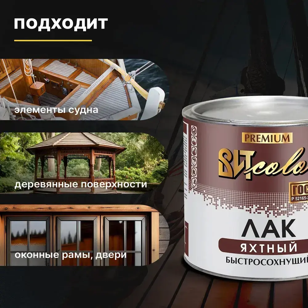 Лак Яхтный для дерева бесцветный глянцевый ВИТ color 2,4 кг (2,88 л)/для наружных и внутренних работ быстросохнущий высокопрочный атмосферостойкий водостойкий устойчивый к УФ излучению