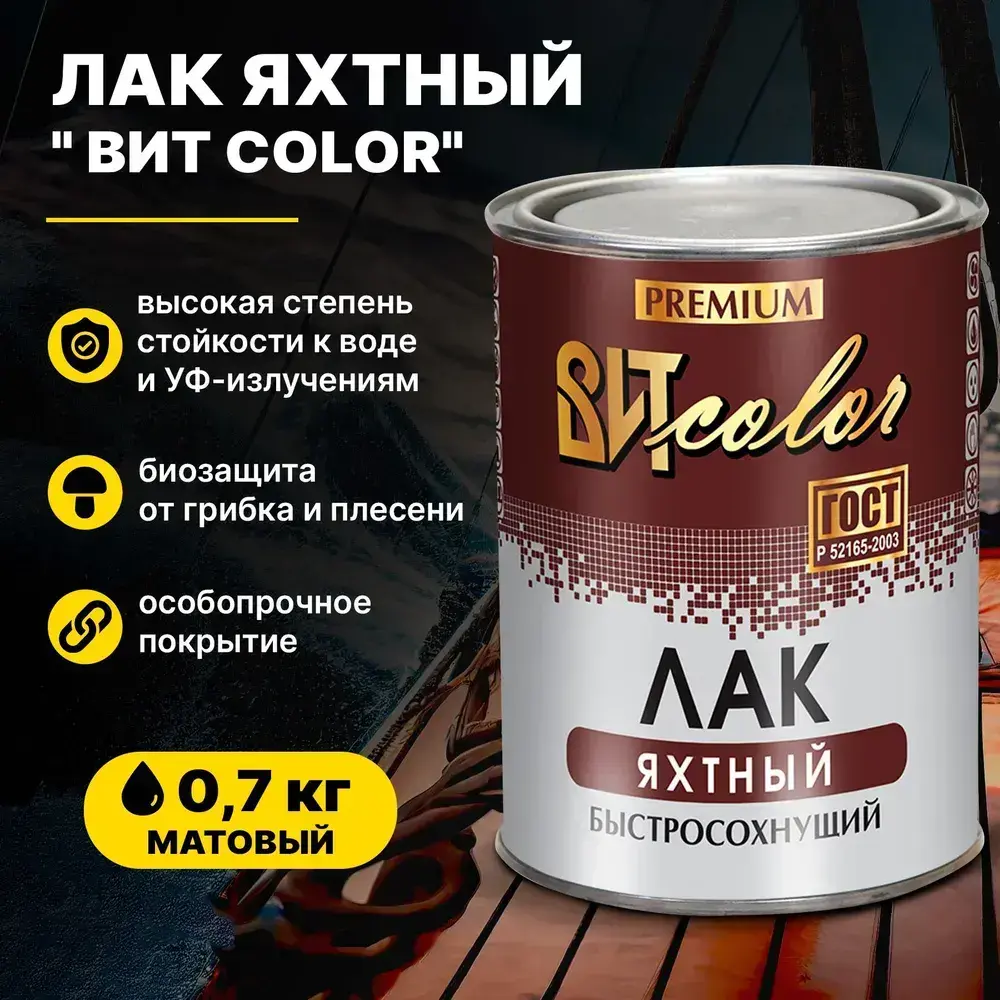 Лак Яхтный для дерева бесцветный матовый ВИТ color 0,7 кг (0,84 л)/для наружных и внутренних работ быстросохнущий высокопрочный атмосферостойкий водостойкий устойчивый к УФ излучению