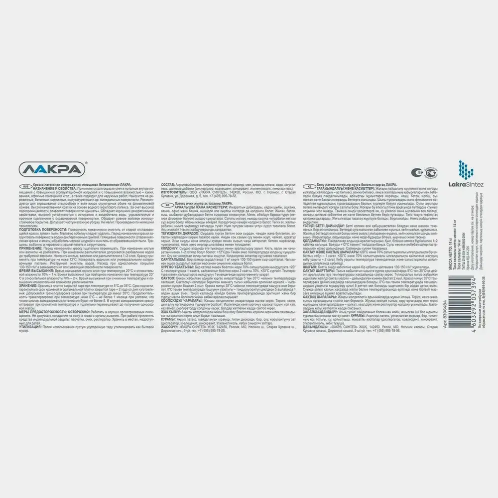 ЛАКРА краска ВД латексная, моющаяся, белая, матовая, 14 кг
