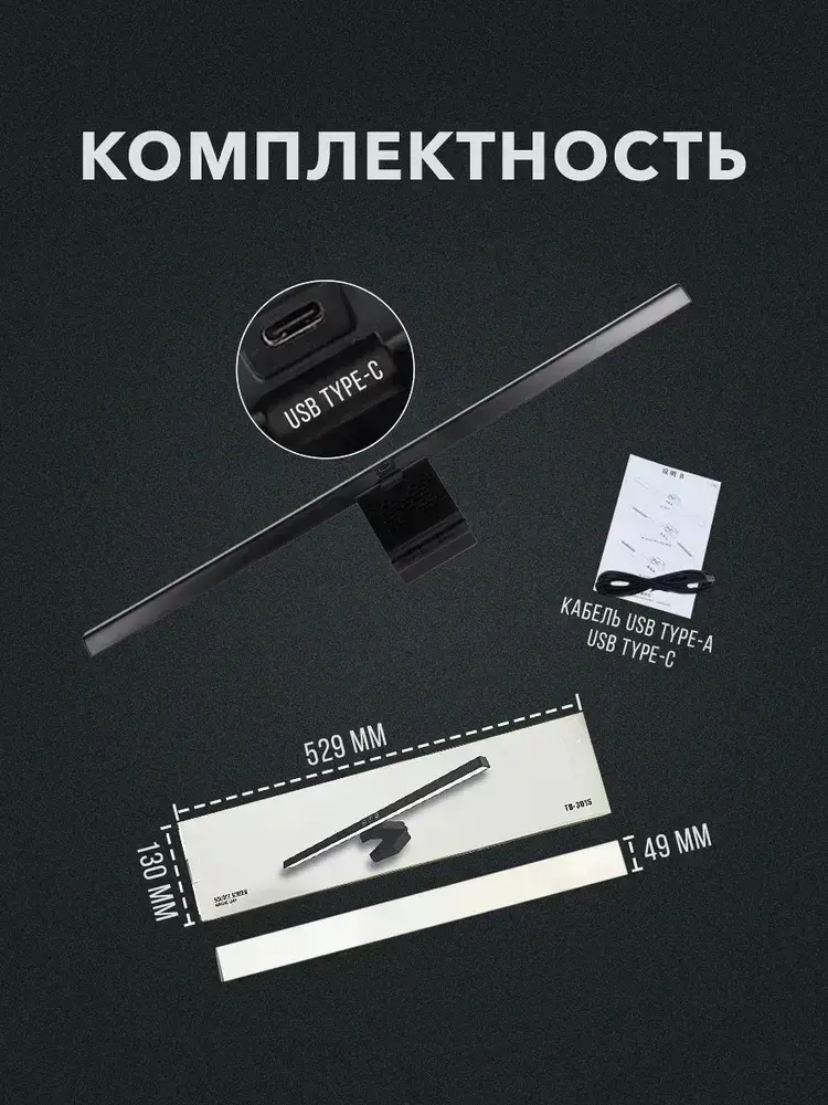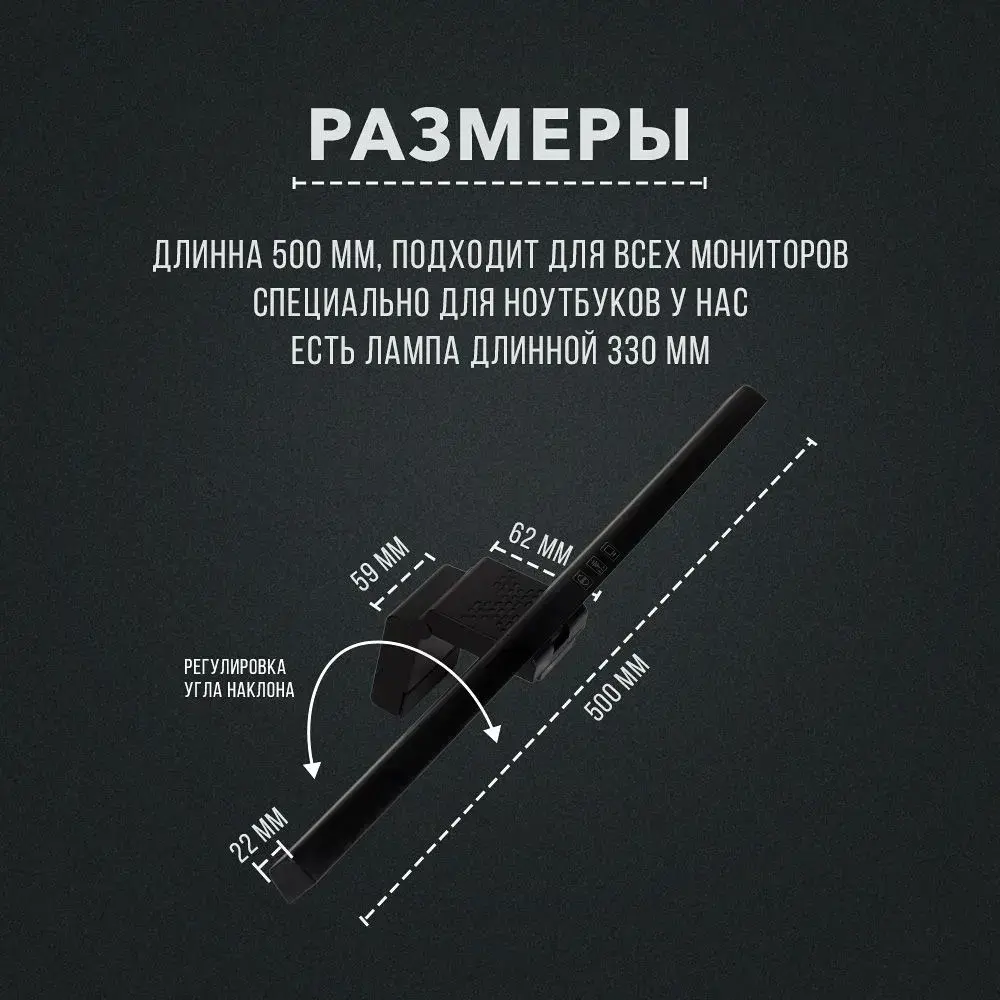Лампа для монитора / Светильник лед с креплением на монитор, черный, 50 см