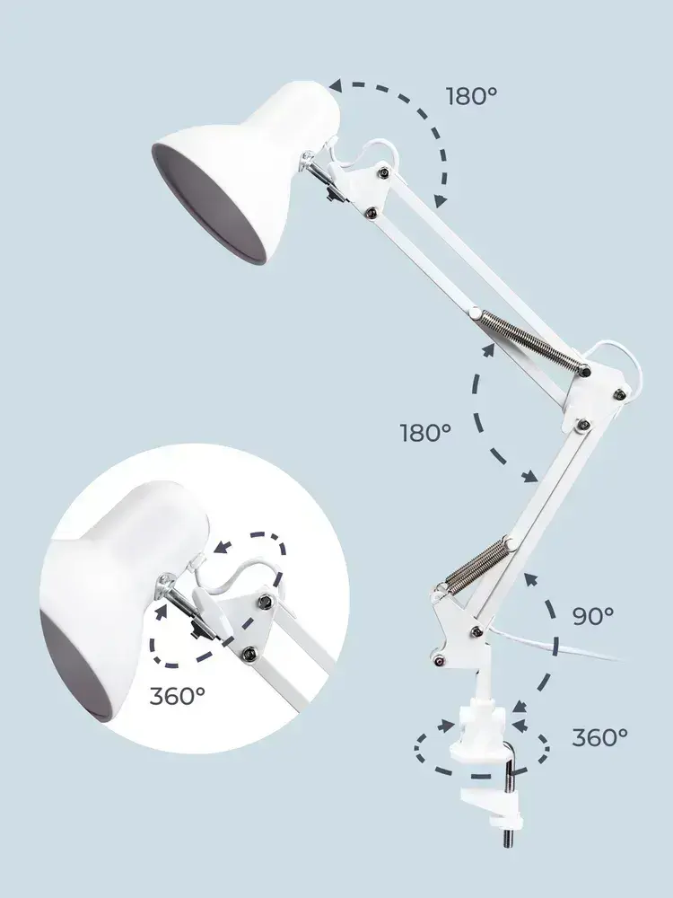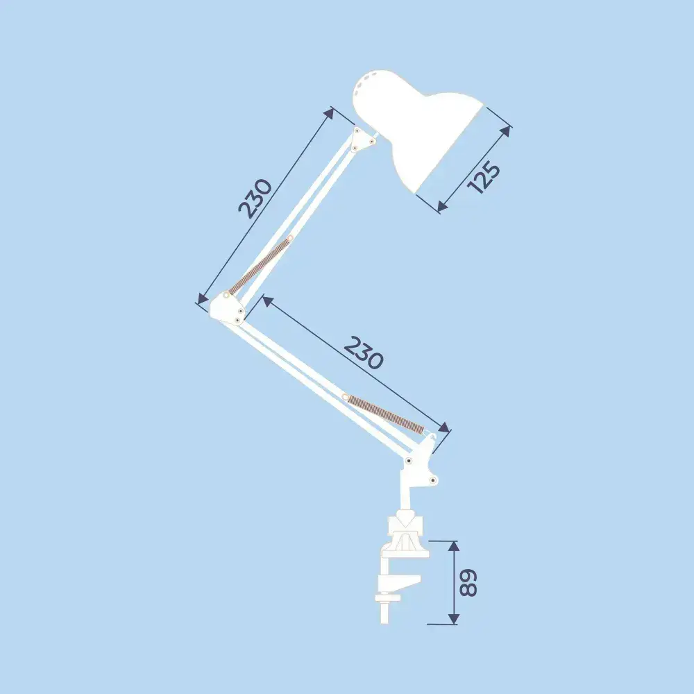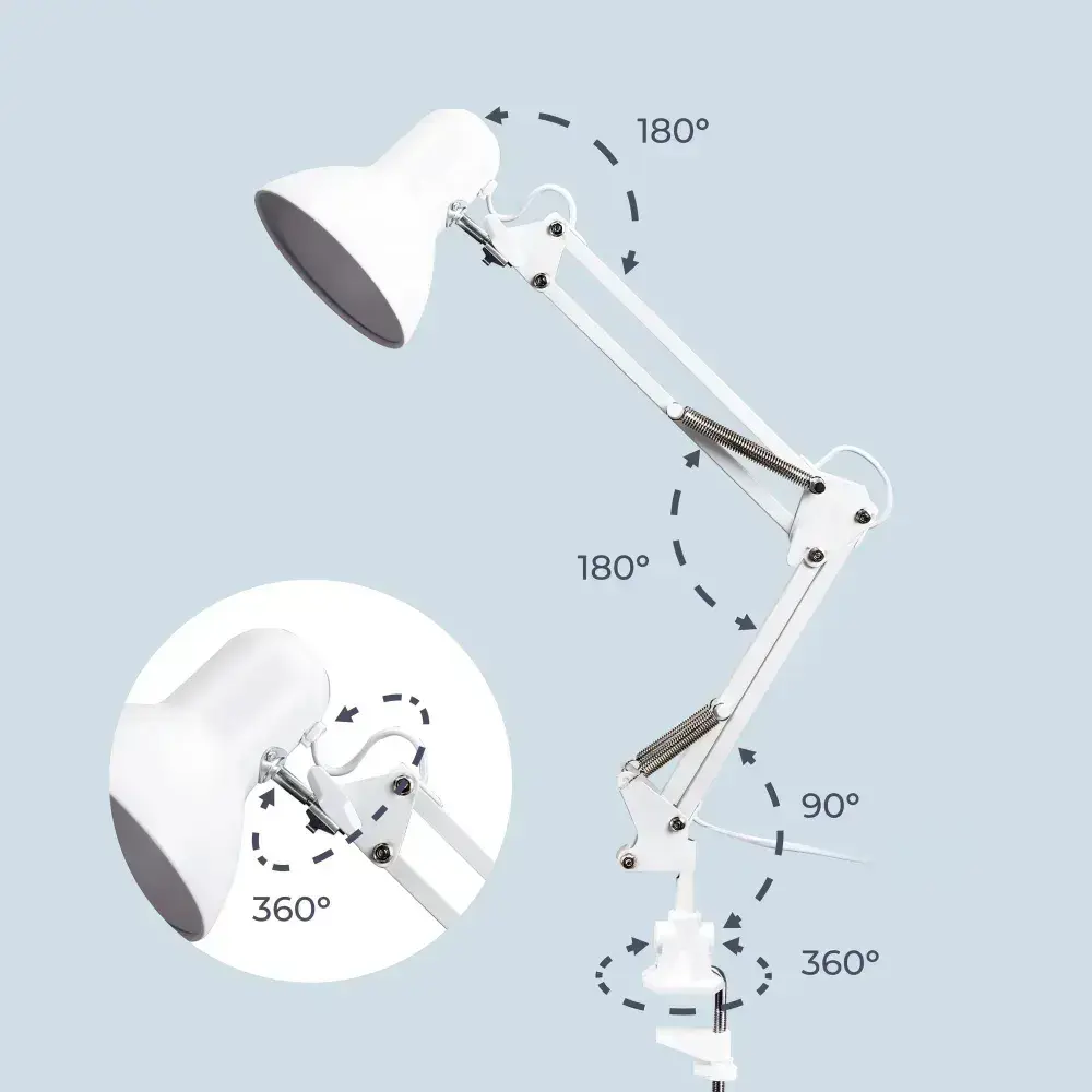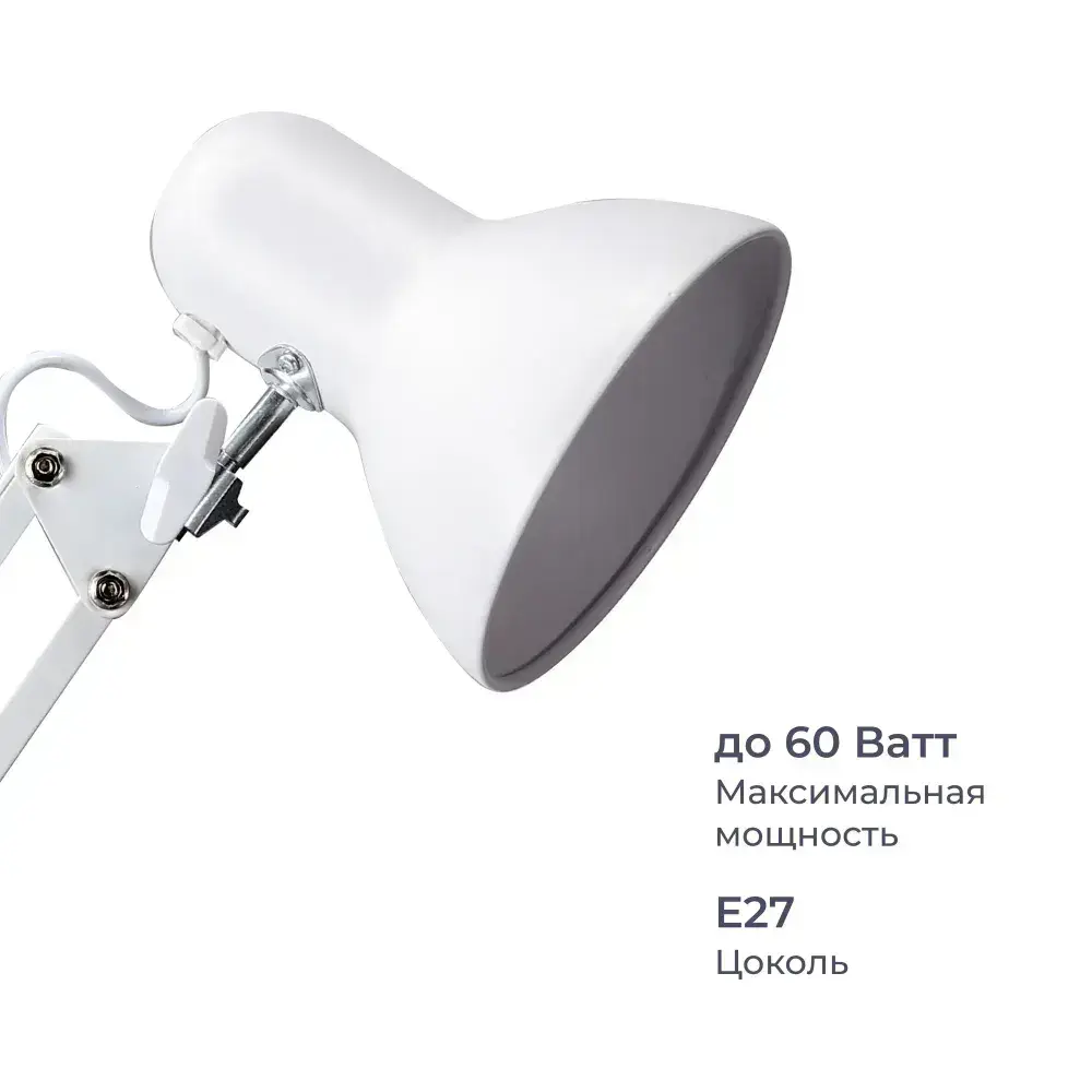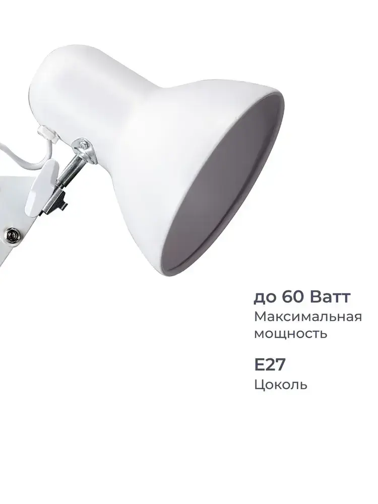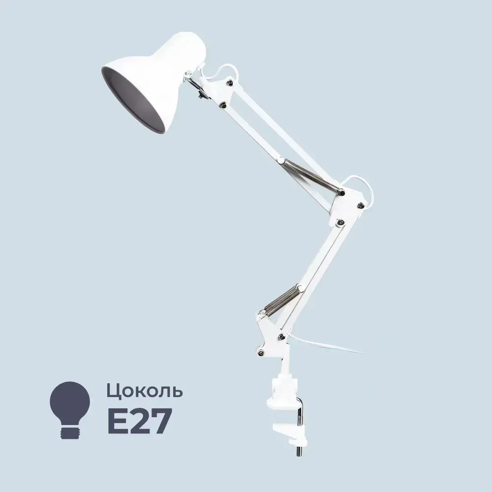 Лампа настольная Homsly с цоколем Е27, крепление струбцина, размер 23х23х12,5, цвет корпуса матовый белый, TTL_003