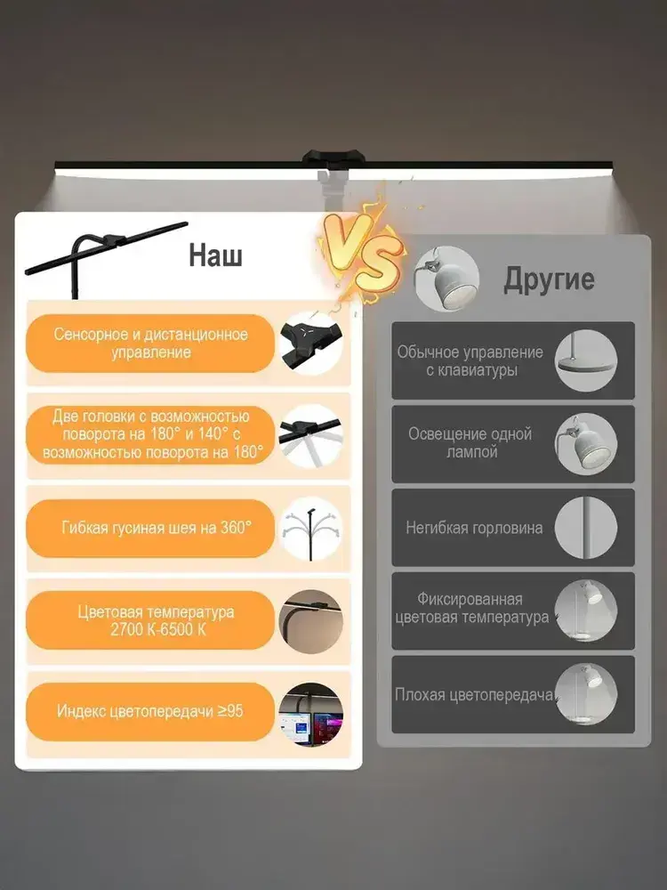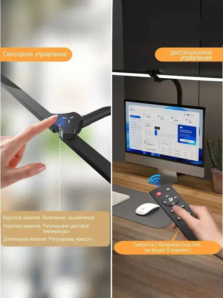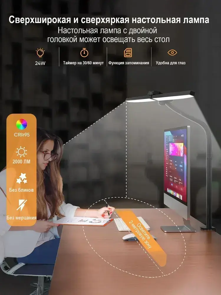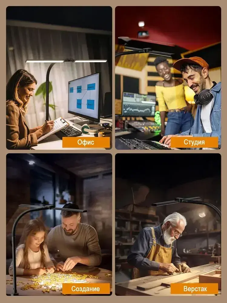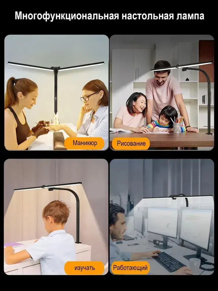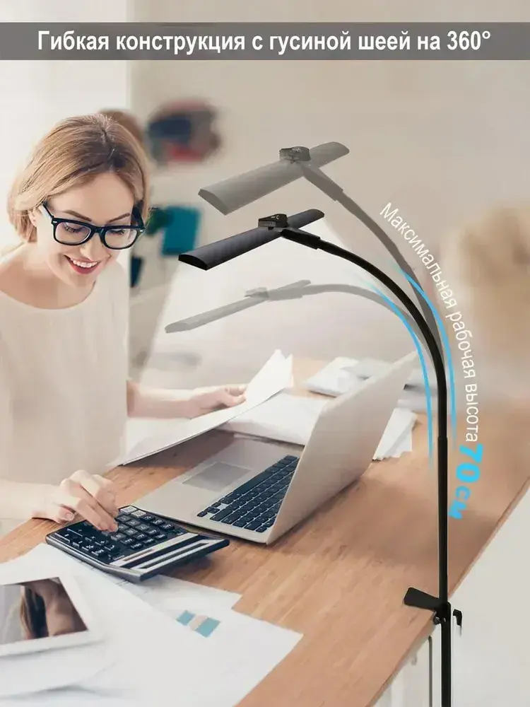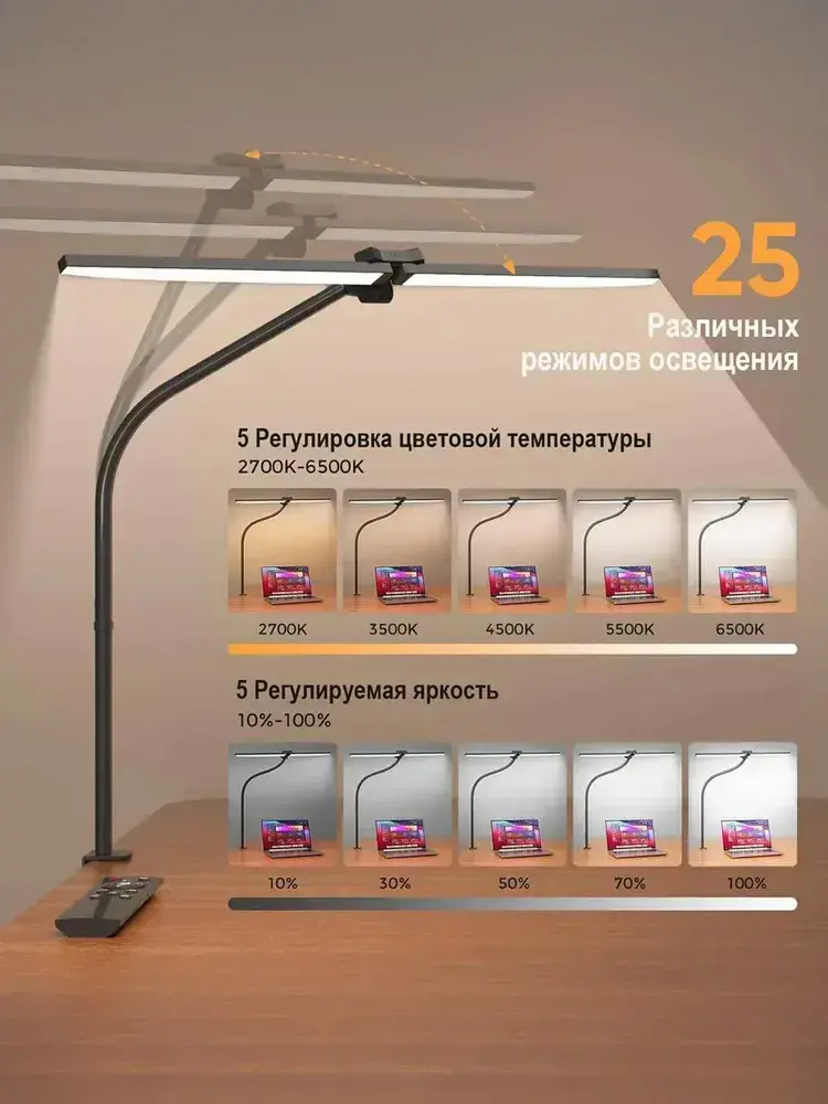 Лампа настольная светодиодная бестеневая 24Вт на струбцине, двойная,25 режимов,С дистанционным управлением