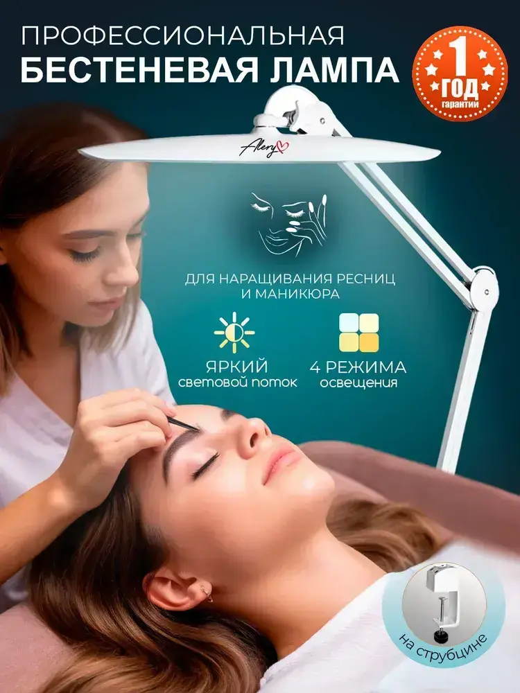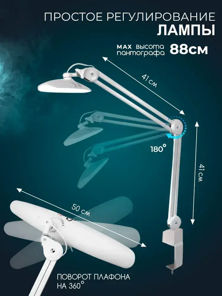 Лампа настольная светодиодная, бестеневая на струбцине, для маникюра, наращивания ресниц, школьника, косметолога, бровиста