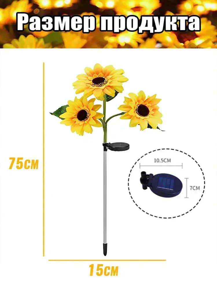 Лампа Sun sunflower с тремя головками, солнечного типа