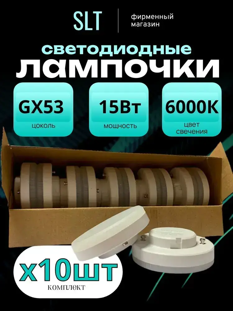 Лампа светодиодная GX53 15Вт фирмы SLT, 6000К белый свет, 1212Лм, упаковка 10шт.