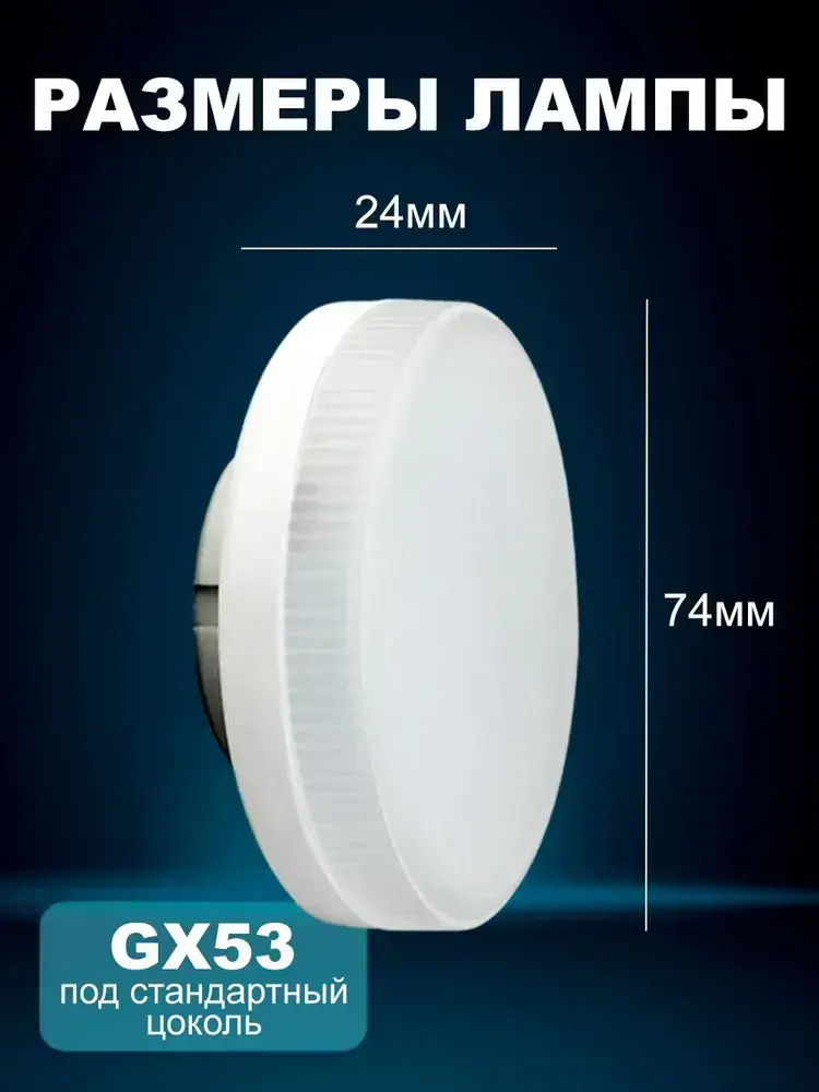 Лампа светодиодная с цоколем GX53 мощностью 12Вт, 6000К холодный белый свет, 1080 Лм, упаковка 10шт.