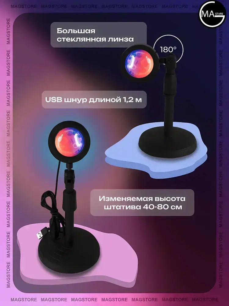 Лампа закат настольная, ночник rgb, лампа цветная декоративная, sunset lamp.