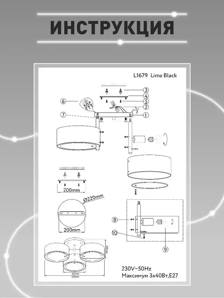 Lamplandia Люстра потолочная на кухню, L1679 LIMA BLACK, E27