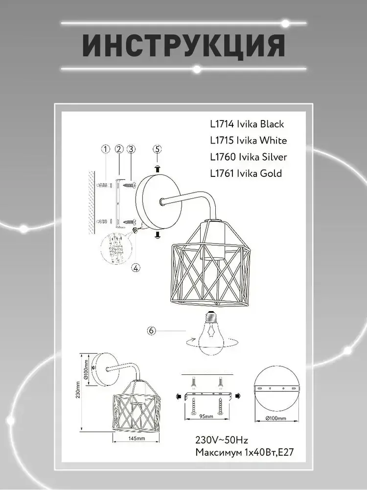 Lamplandia Светильник настенный, L1714 IVIKA BLACK, E27