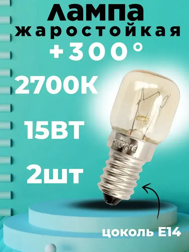 Лампочка для духовки 2шт для духового шкафа, микроволновки, жаростойкая до 300 градусов, жаропрочная лампочка E14 15W термостойкая 15вт.