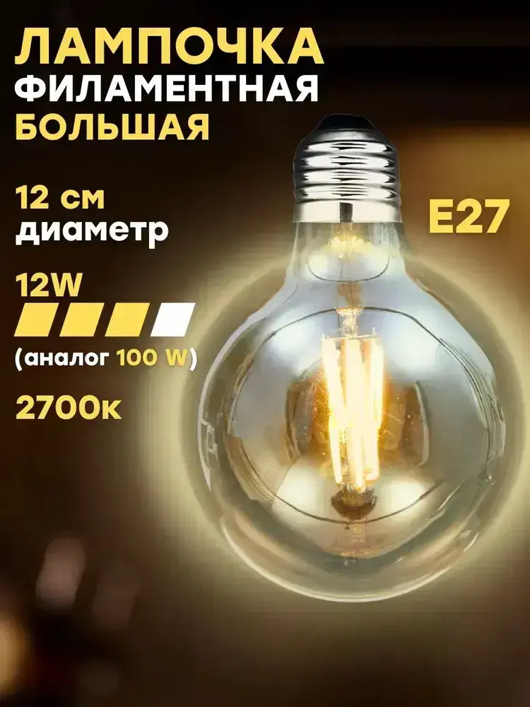 Лампочка филаментная большая, Е27, 12 Вт