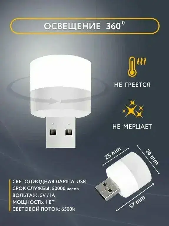 Лампочка фонарик ночник USB портативная мини в комплекте 2 штуки