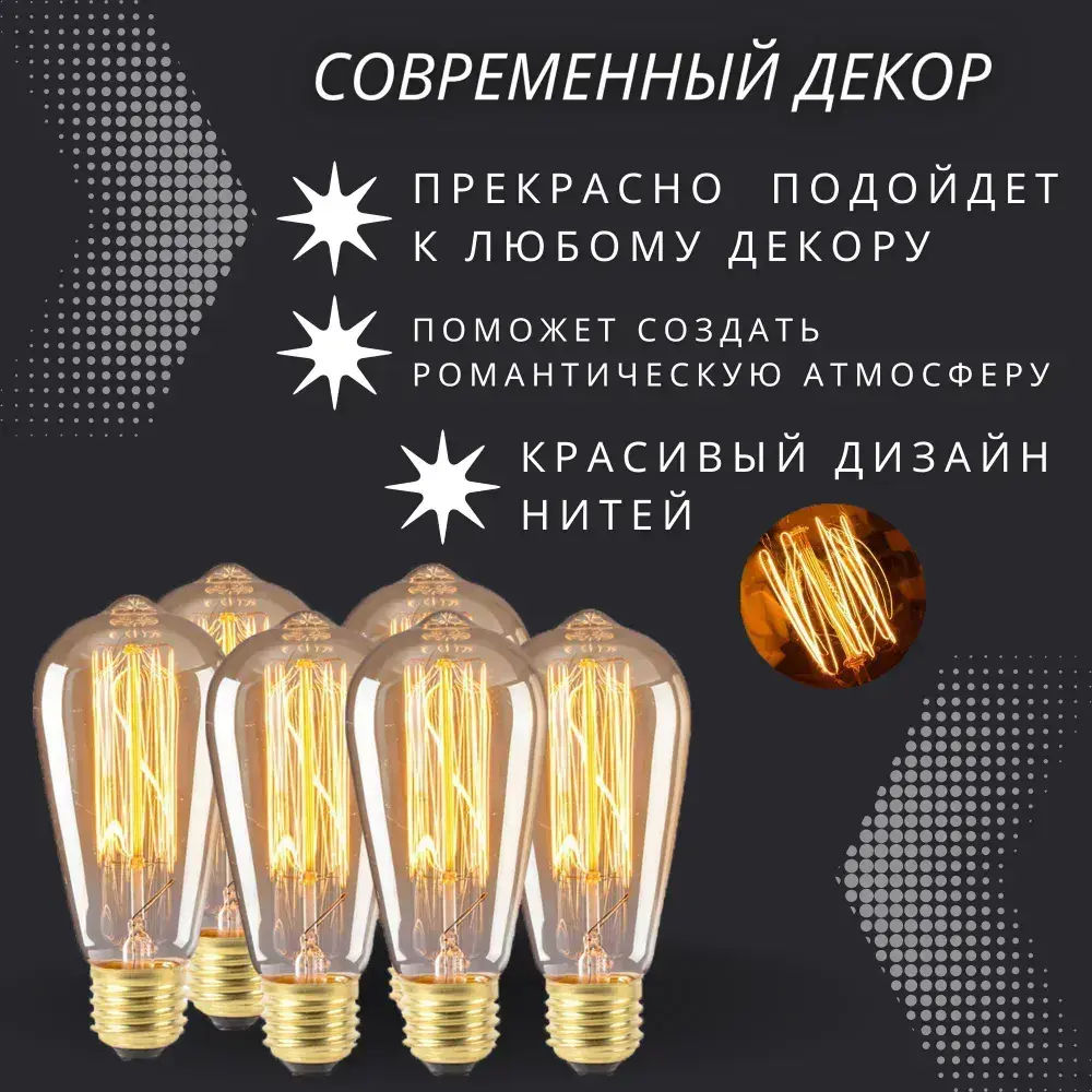 Лампочка накаливания винтажная для декора E27 40w / Лампа Эдисона форма груша ST64