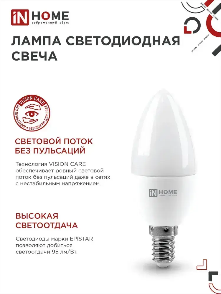 Лампочка светодиодная Е14 свеча 8Вт нейтральный белый 4000К 760Лм упаковка 4шт. IN HOME