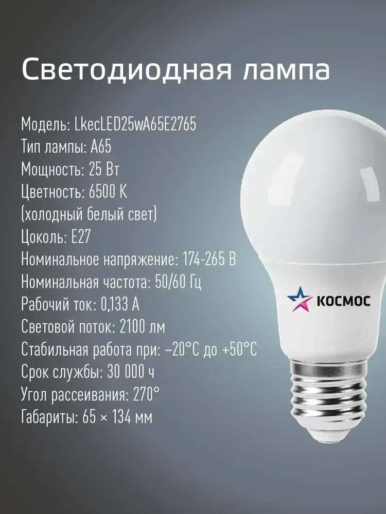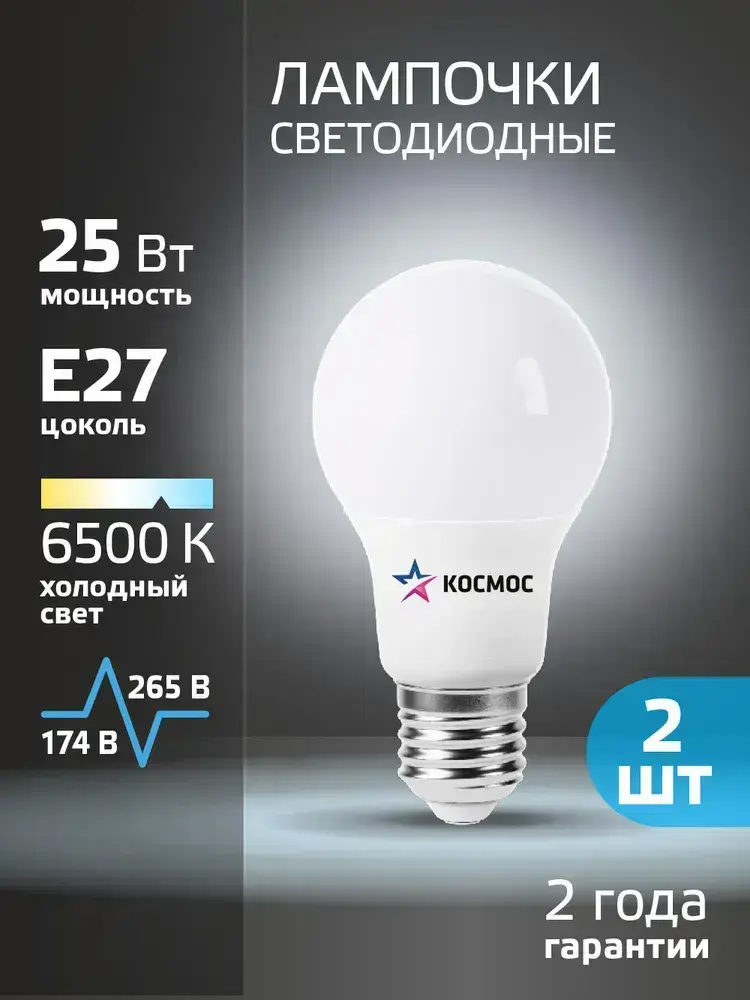 Лампочка светодиодная Е27 25 ВТ холодный свет 2 шт