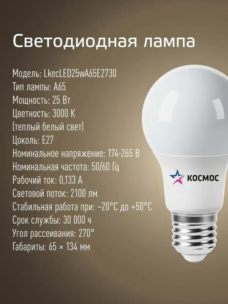 Лампочка светодиодная Е27 25 ВТ теплый свет 2 шт