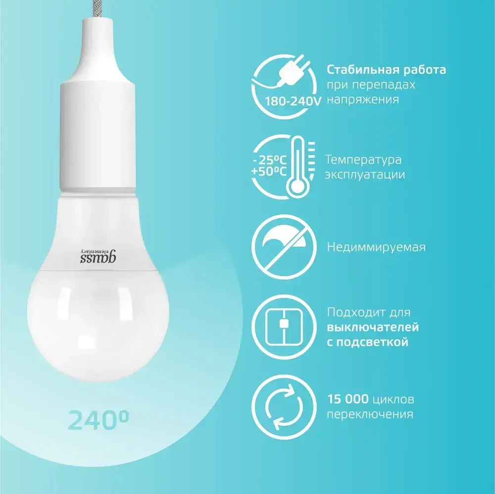 Лампочка светодиодная Е27 Груша 15W 4100К нейтральный-белый свет УПАКОВКА-10 шт. Gauss Elementary