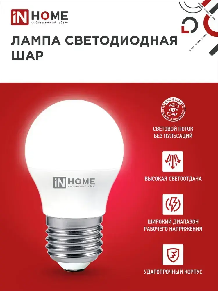Лампочка светодиодная Е27 шар 11Вт холодный свет 6500К 1050Лм упаковка 4шт. IN HOME