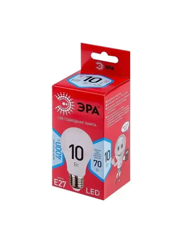 Лампочка светодиодная ЭРА LED E27 10 Вт A60 груша 4000К нейтральный белый свет набор 10 штук