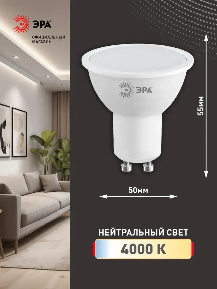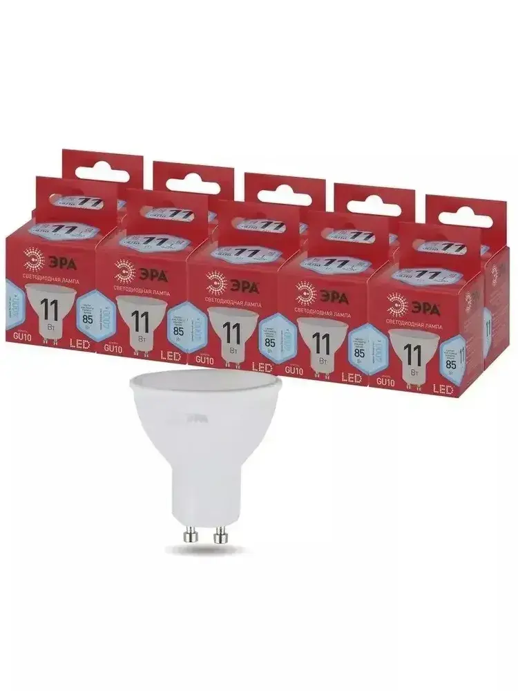 Лампочка светодиодная ЭРА LED MR16 GU10 11 Вт софит 4000К нейтральный белый свет набор 10 штук