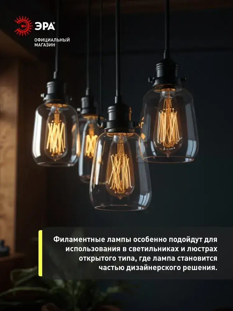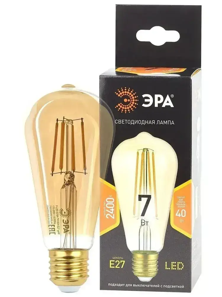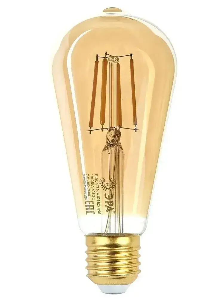Лампочка светодиодная филаментная ЭРА LED E27 7 Вт ST64 груша 2400К теплый белый свет 1 штука