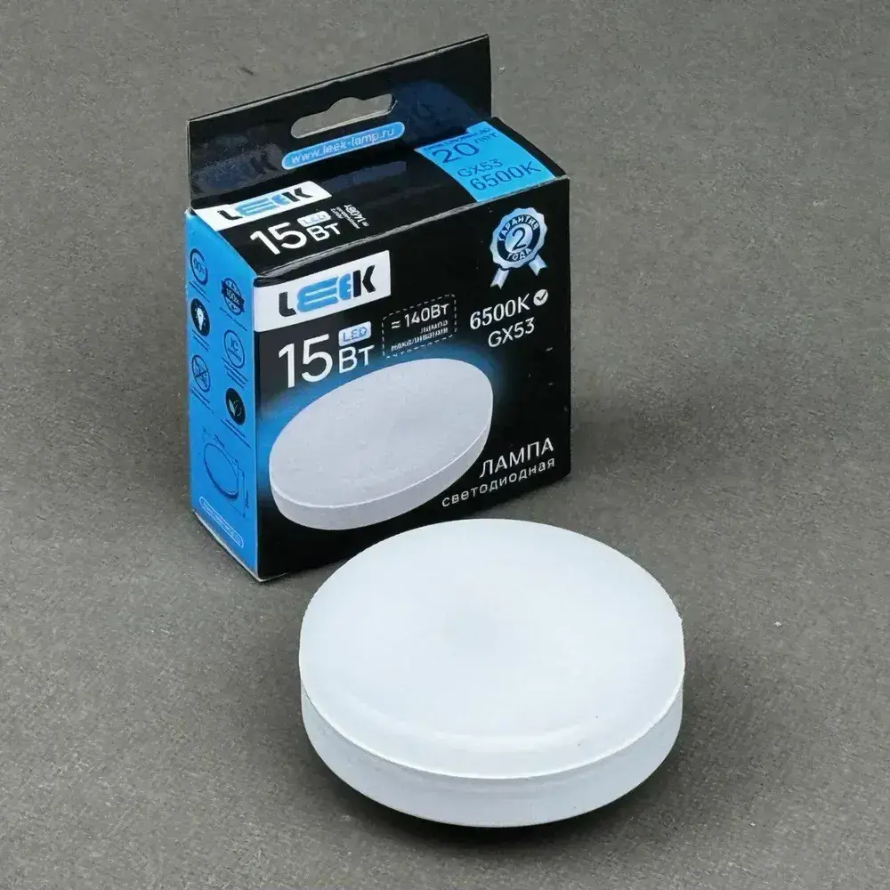 Лампочка светодиодная GX53 15 ватт 6500K Leek (комплект 10 шт) яркий холодный белый свет