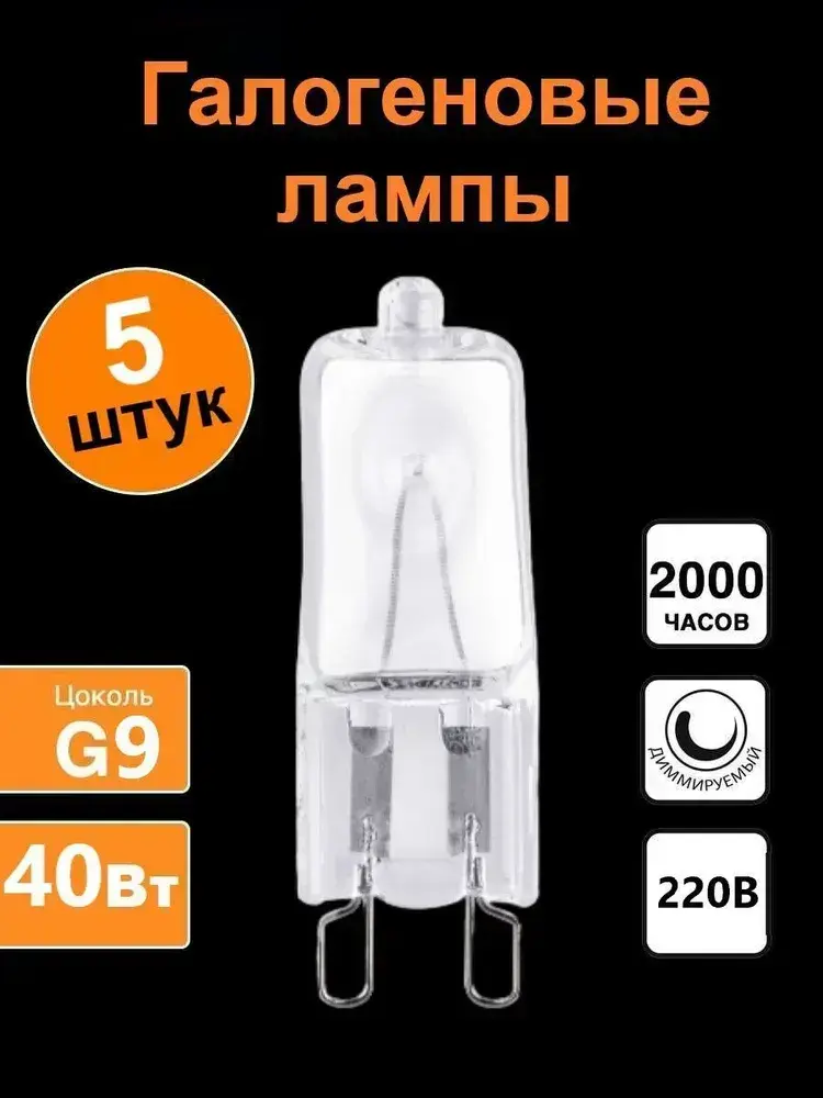 Лампочка, Цоколь:G9, 40 Вт, Галогенная, 5 шт.