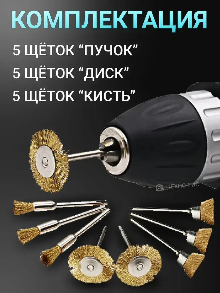 Латунные зачистные щетки для гравера, дрели, шуруповерта 15 шт