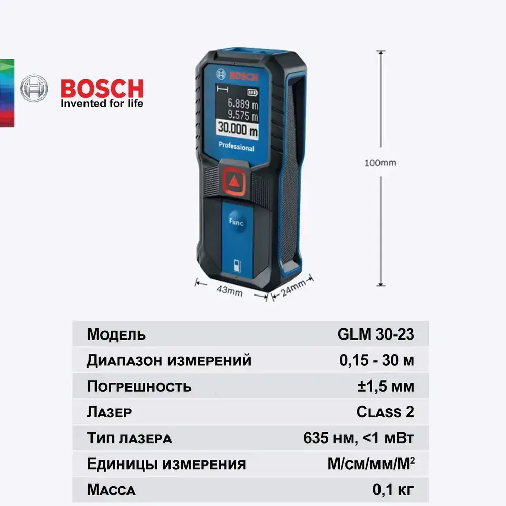 Лазерный дальномер Bosch GLM 30-23 (0,15 - 30 м, измерение расстояния, площади)