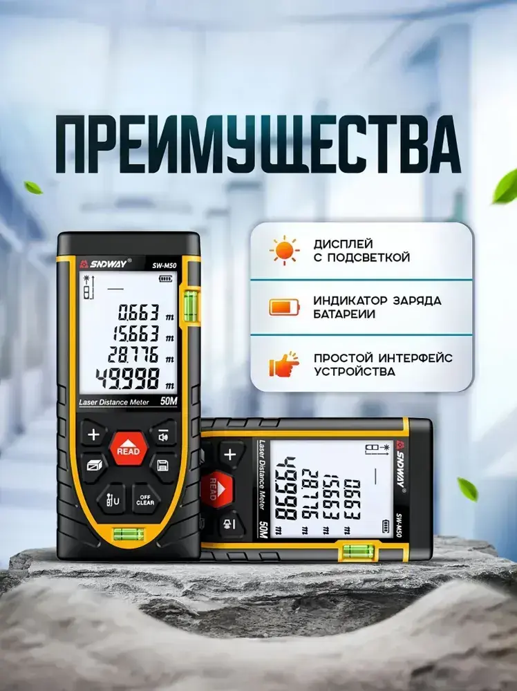 Лазерный дальномер до 50 метров lp54 / лазерная рулетка / цифровой со встроенным уровнем строительный измерительный прибор для стройки 50 метров.
