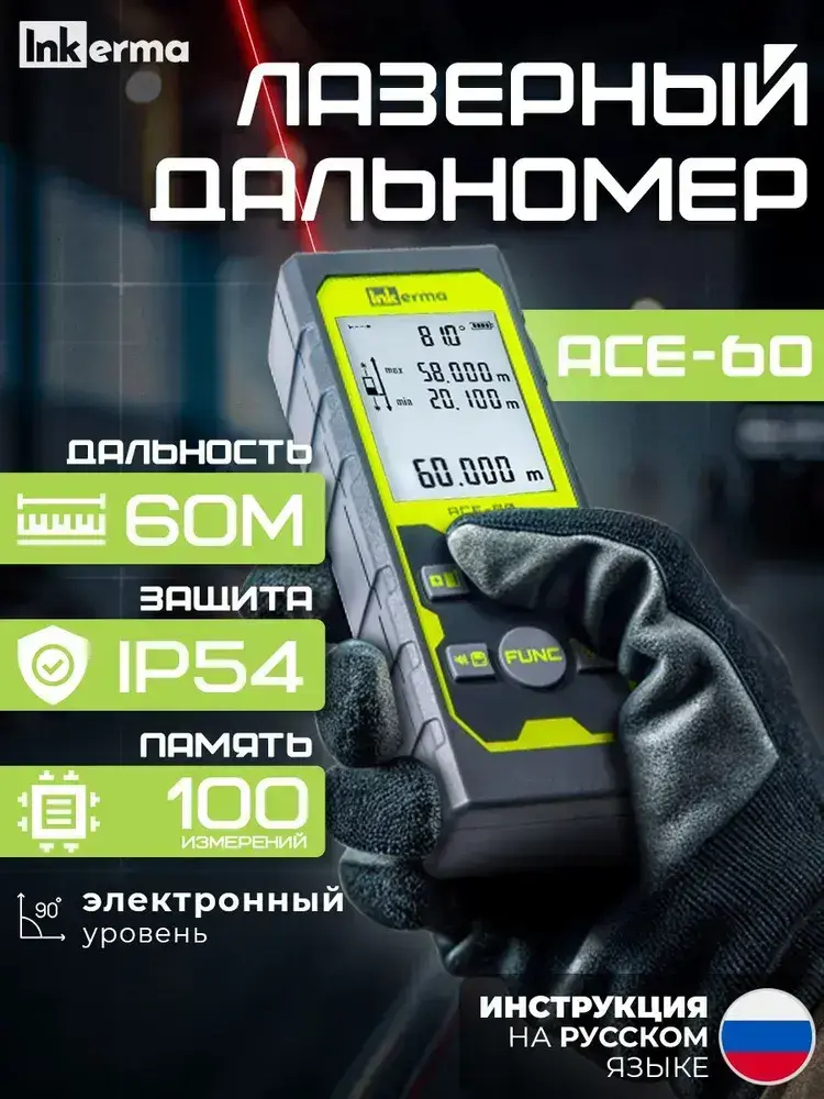 Лазерный дальномер строительный Inkerma ACE-60 лазерная рулетка электронная для ремонта и строительства 60м