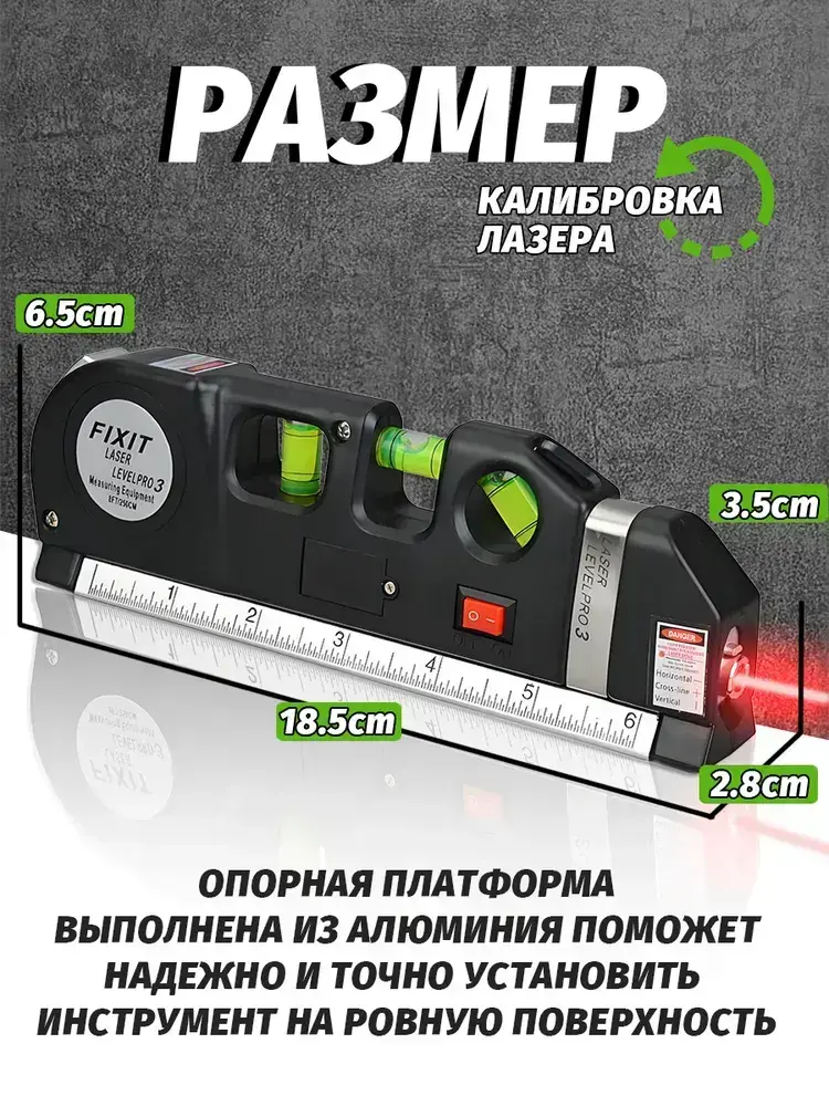Лазерный нивелир Laser Level Pro 3 со встроенной рулеткой 2.5 метра