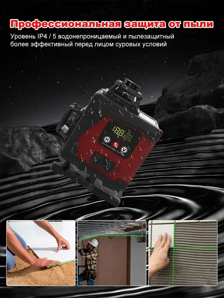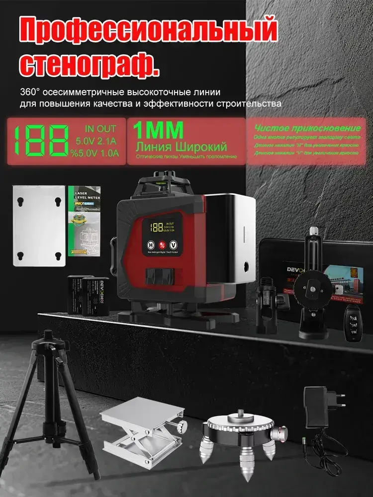 Лазерный уровень 4D 16 линий, 30mw, с штативом, 2 АКБ 4400 мАч