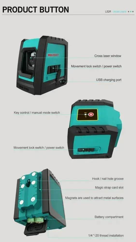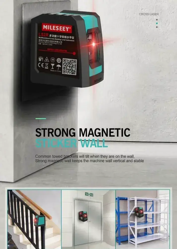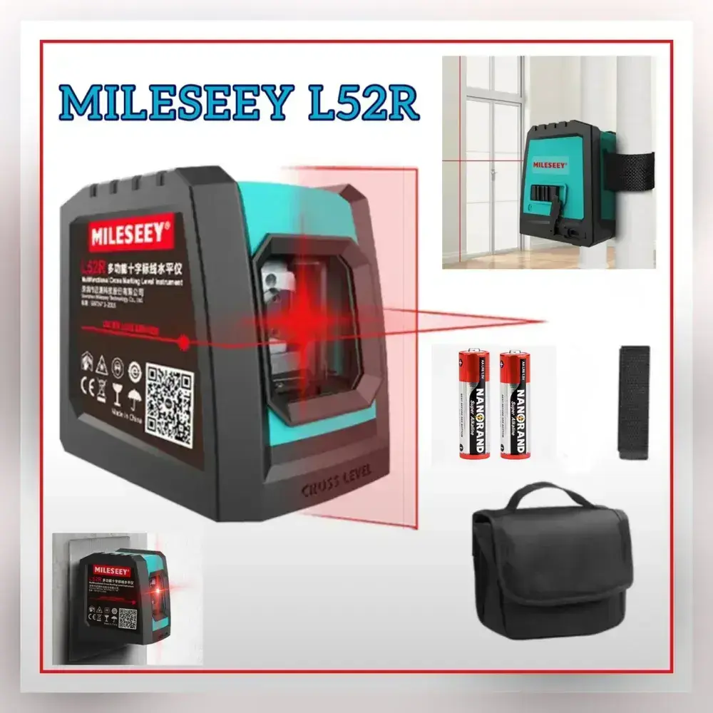Лазерный уровень Mileseey L52R, с магнитным держателем, крепежной лентой, красный луч, Нивелир, для небольших помещений версия от ААх2 батареек
