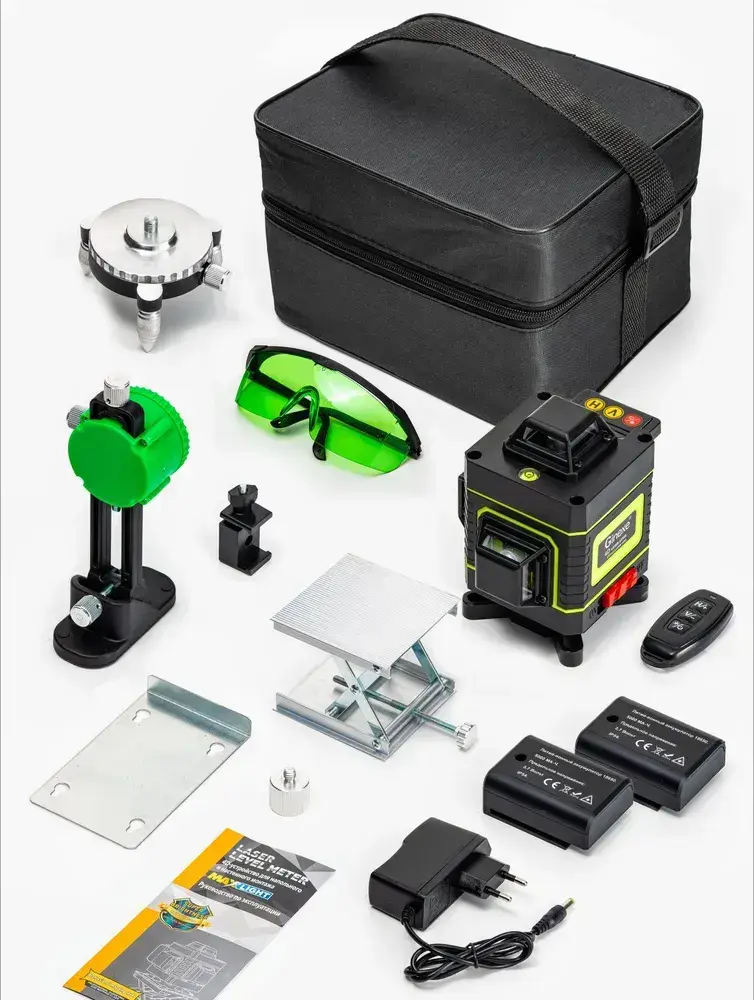 Лазерный уровень нивелир 4D, 16 линий, 2 аккумулятора, тренога 360 градусов