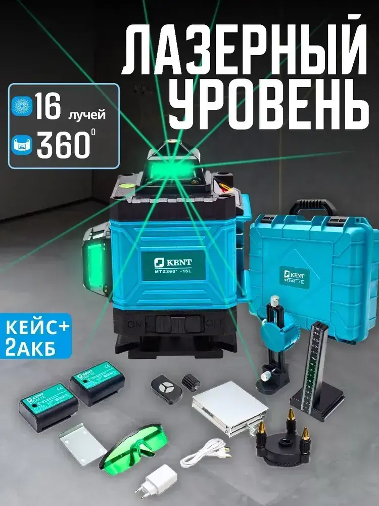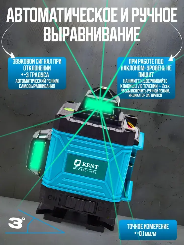 Лазерный уровень нивелир 4D 16 линий зеленый луч 360 с подставкой, KENT MTZ360-16L