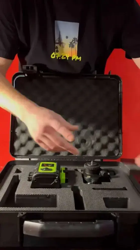Лазерный уровень нивелир Fukuda 4D 360 MW94D4GX PRO самовыравнивающийся лазер - зеленый луч, 16 линий в комплекте со штативом, магнитным креплением, угловым держателем, зарядным устройством